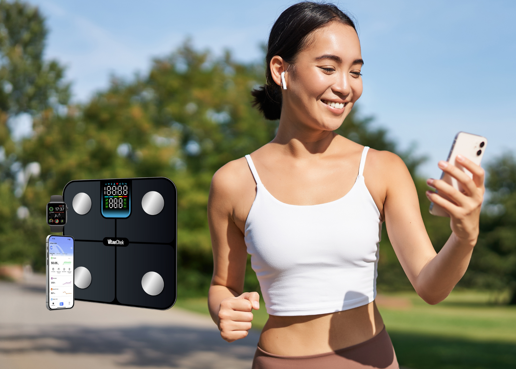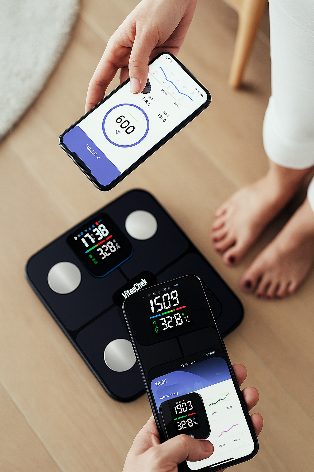Bilancia smart elegante con sensori di ultima generazione. Misura peso in modo preciso e sincronizza i dati sull’app. Perfetta per monitorare quotidianamente forma fisica e benessere.