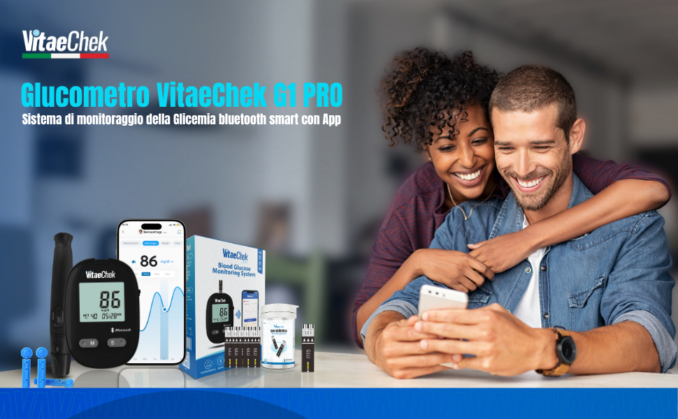 - ✅ TECNOLOGIA GDH AD ALTA PRECISIONE CON SENSORE GLICEMIA AVANZATO : Il misuratore di glicemia VitaeChek G1 Pro utilizza strisce glicemia con biosensore a Glucosio Deidrogenasi (GDH-FAD), riducendo al minimo le interferenze da altre sostanze nel sangue. Ideale per un controllo glicemia affidabile anche in presenza di variazioni ematiche, perfetto per donne in gravidanza, neonati e pazienti con anemia.